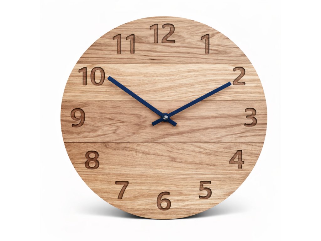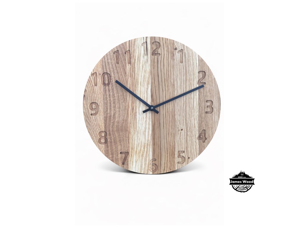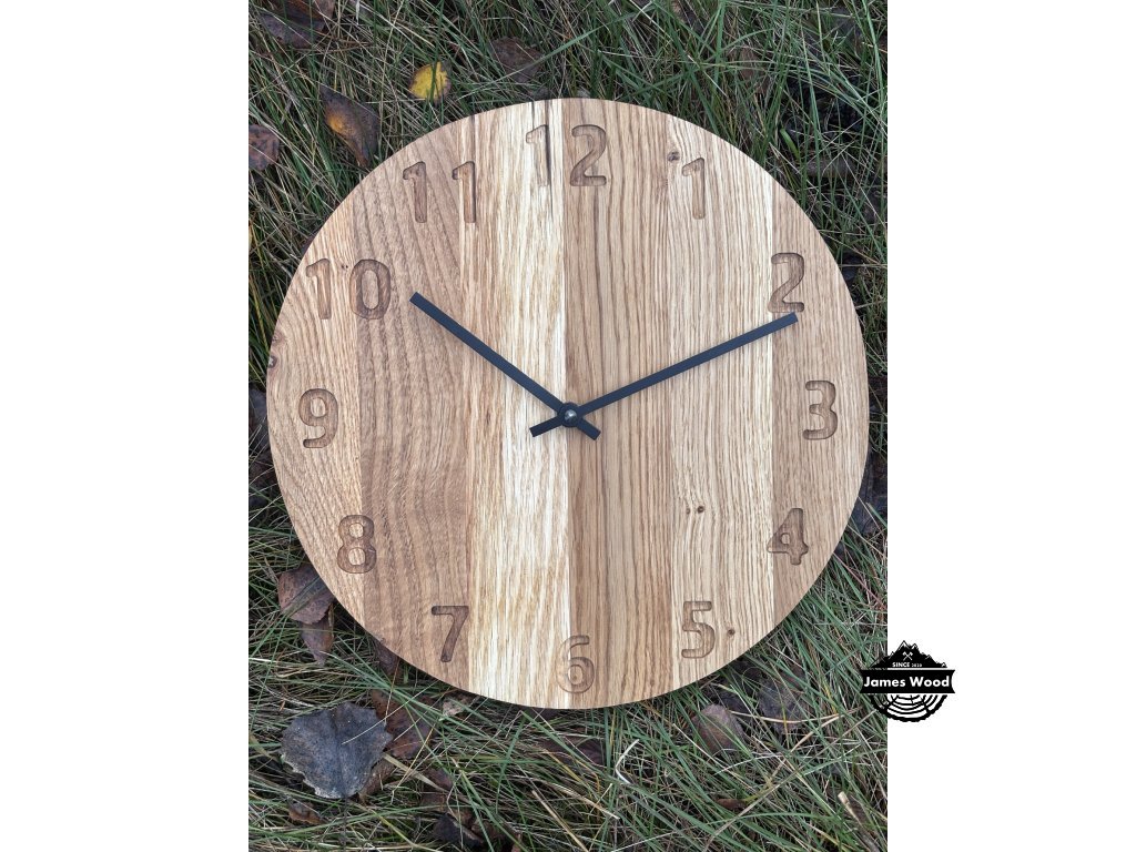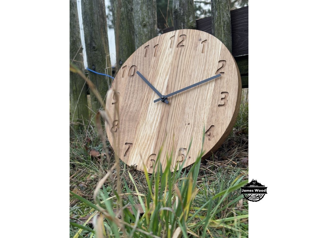 Dřevěné, ručně vyráběné hodiny s jemným designem. Hodiny na obrázku jsou vyrobeny z dubového dřeva, dále může být tento typ hodin vyroben také ze dřeva ořechového. Dřevo je opracováno a natřeno olejem od značky OSMO, který je zdravý nezávadný a je určený i pro styk s potravinami.