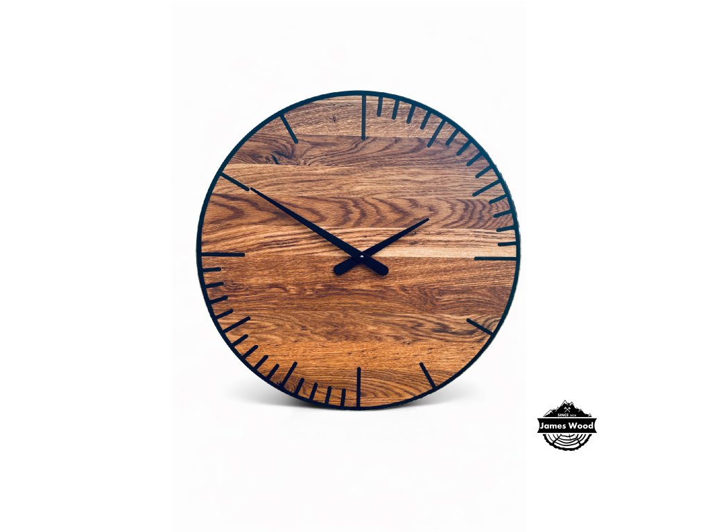 Hodiny jsou vyráběny ručně, proto jsou naše díla velmi povedená a kvalitní. Hodiny na obrázku jsou vyrobené z Dubového dřeva. Toto dřevo má velmi specifickou kresbu. Dále tento typ hodin může být vyroben z ořechového dřeva, jasanového nebo dřeva bukového. Obrazec je vylitý epoxidovou pryskyřicí, která může být laděná do jakékoliv barvy. Dřevo je opracováno a natřeno olejem od značky OSMO, který je zdravý nezávadný a je určený i pro styk s potravinami.