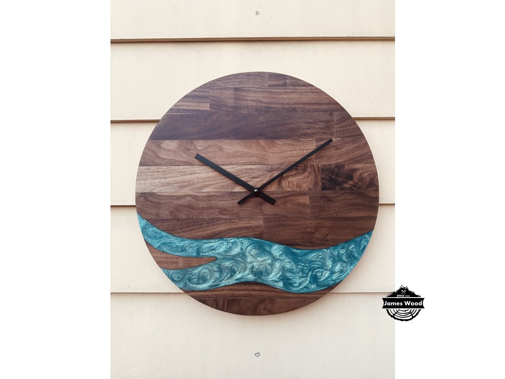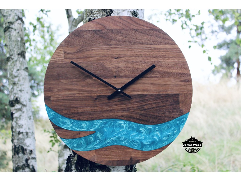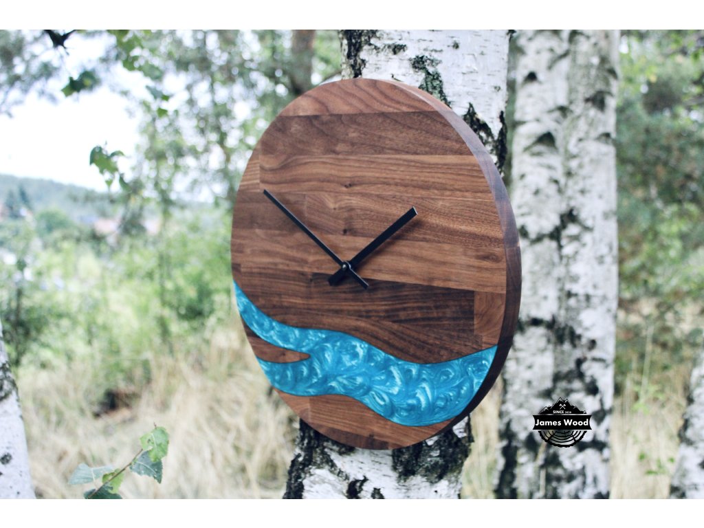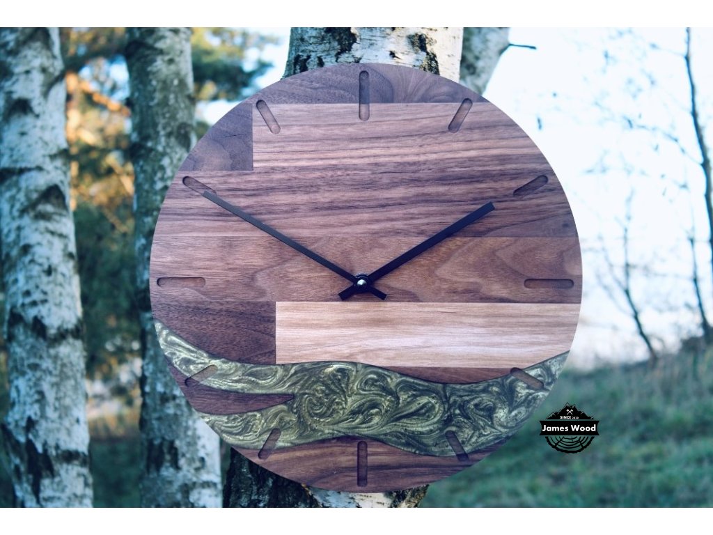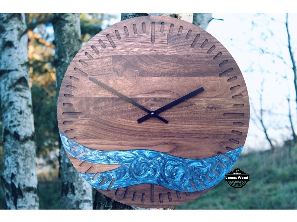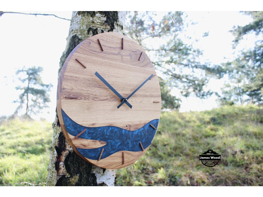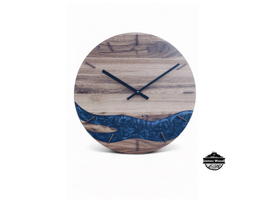 Hodiny jsou vyráběny ručně, proto jsou naše díla velmi povedená a kvalitní. Hodiny na obrázku jsou vyrobené z Dubového dřeva. Toto dřevo má velmi specifickou kresbu. Dále tento typ hodin může být vyroben z ořechového dřeva, jasanového nebo dřeva bukového. Obrazec je vylitý epoxidovou pryskyřicí, která může být laděná do jakékoliv barvy. Dřevo je opracováno a natřeno olejem od značky OSMO, který je zdravý nezávadný a je určený i pro styk s potravinami.