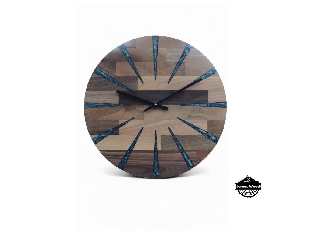 Hodiny jsou vyráběny ručně, proto jsou naše díla velmi povedená a kvalitní. Tyto jednoduché hodiny znázorněné na obrázku mají dřevěné ručičky a jsou vyrobené z ořechového dřeva. Toto dřevo má velmi specifickou kresbu. Dále tento typ hodin může být vyroben z dřeva dubového, bukového nebo jasanového. Dřevo je opracováno a natřeno olejem od značky OSMO, který je zdravý nezávadný a je určený i pro styk s potravinami.