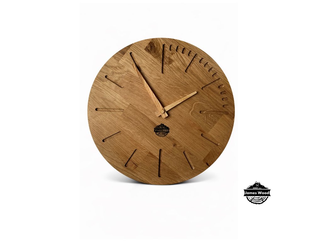 Hodiny jsou vyráběny ručně, proto jsou naše díla velmi povedená a kvalitní. Tyto jednoduché hodiny znázorněné na obrázku mají dřevěné ručičky a jsou vyrobené z dubového dřeva. Toto dřevo má velmi specifickou kresbu. Dále tento typ hodin může být vyroben z dřeva jasanu, buku nebo ořechu. Dřevo je opracováno a natřeno olejem od značky OSMO, který je zdravý nezávadný a je určený i pro styk s potravinami.