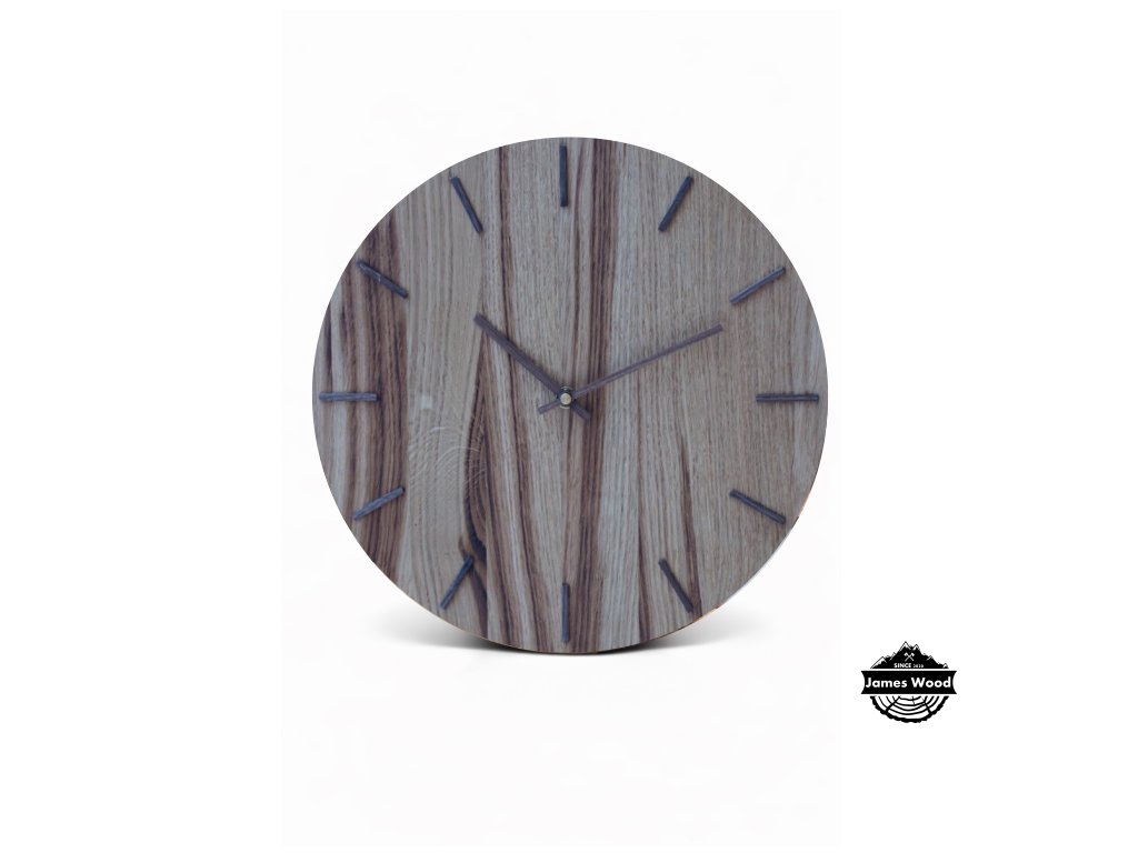 Dřevěné, ručně vyráběné hodiny s jemným designem. Hodiny na obrázku jsou vyrobeny z dubového dřeva, dále může být tento typ hodin vyroben také ze dřeva ořechového a jasanového. Dřevo je opracováno a natřeno olejem od značky OSMO, který je zdravý nezávadný a je určený i pro styk s potravinami.