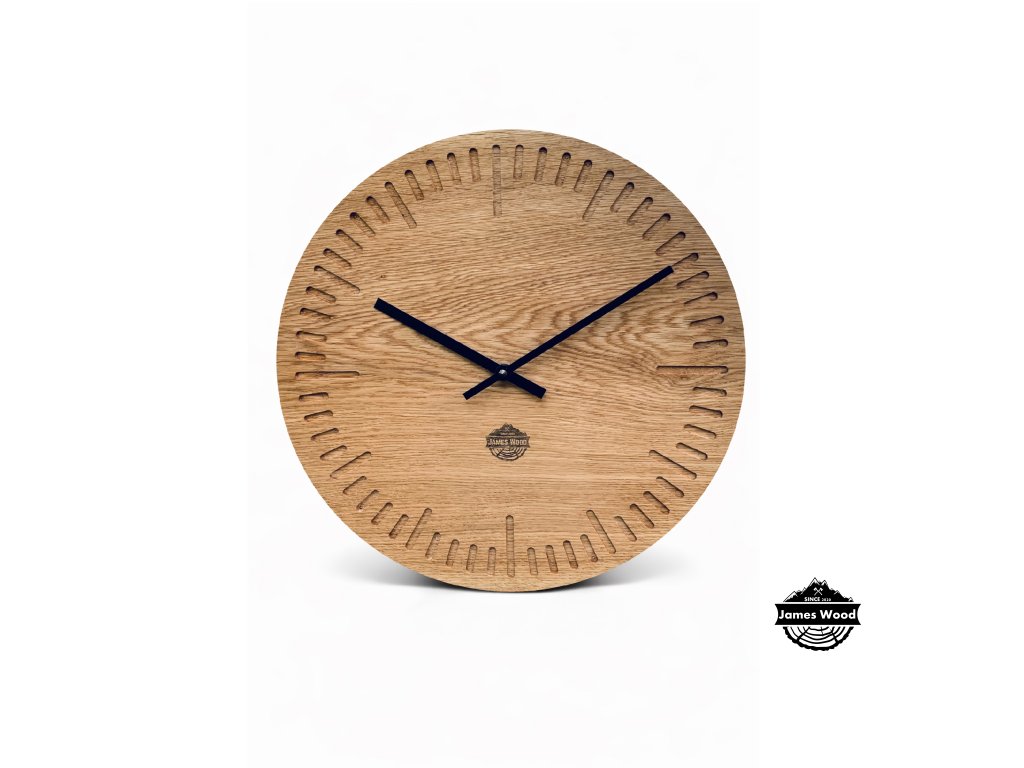 Hodiny jsou vyráběny ručně, proto jsou naše díla velmi povedená a kvalitní. Tyto jednoduché hodiny znázorněné na obrázku mají hliníkové ručičky a jsou vyrobené z dubového dřeva. Toto dřevo má velmi specifickou kresbu. Dřevo je opracováno a natřeno olejem od značky OSMO, který je zdravý nezávadný a je určený i pro styk s potravinami.