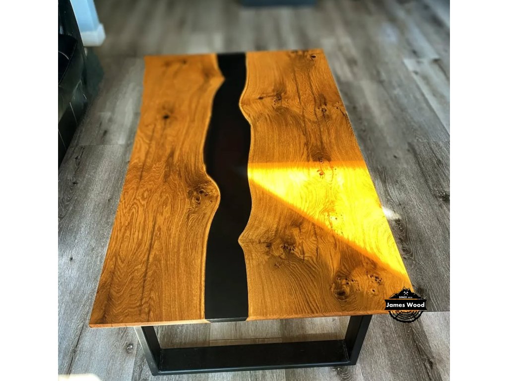Dubový stůl s pryskyřicí – ruční práce z malé dílny na Vysočině