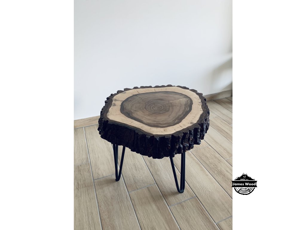Stůl je vyrobený celý z dřevěného masivu v pohodě unese váhu dospělého člověka, ale doporučujeme jej zatěžovat maximálně 40 kilogramy. Stoleček má 3 železné nohy černé barvy.